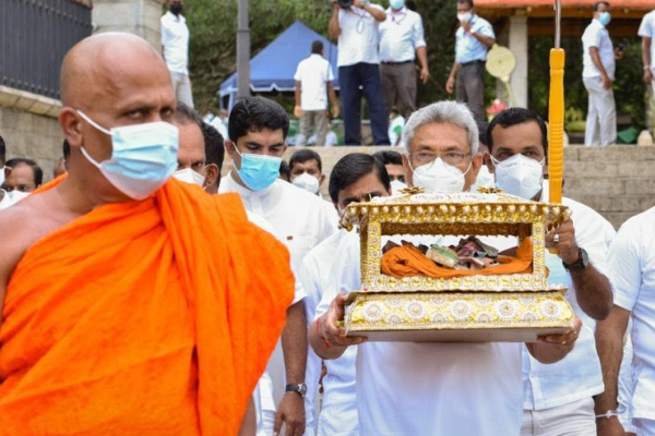 இதை இன்னுமொரு வழியில் விளக்கினால் ஜனாதிபதியை வீட்டுக்குச் செல்லுமாறும், பிரதமரை பதவி விலகுமாறும் தொடர்ச்சியாக ஆர்ப்பாட்டங்கள் இடம்பெறும் நிலையில் தமிழருக்கு எதிரான போரில் பச்சைக் கொடிகாட்டி ஆசீர்வதித்த அதே மகாசங்க பிக்குகளே கோட்டாபய ராஜபக்சவை பாதுகாக்கின்றனர்.