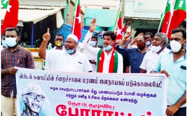 சமூக செயற்பாட்டாளர் ஸ்டேன் சுவாமியின் சிறைச்சாலை மரணத்தை கண்டித்து, ஈரோட்டில் எஸ்டிபிஐ கட்சியினர் ஆர்ப்பாட்டத்தில் ஈடுபட்டனர்.