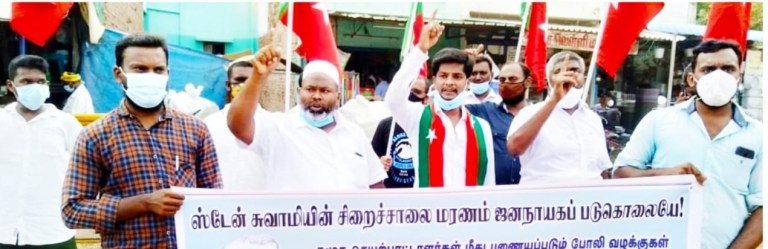 ஆர்ப்பாட்டத்தின் போது, சமூக செயற்பாட்டாளர் ஸ்டேன் சுவாமி மீது போலியான வழக்கு புனையப்பட்டதற்கு எதிர்ப்பு தெரிவித்தும், அவருக்கு உரிய சிகிச்சை அளிக்காத ஒன்றிய அரசுக்கு எதிராகவும் கோஷங்களை எழுப்பினர்.