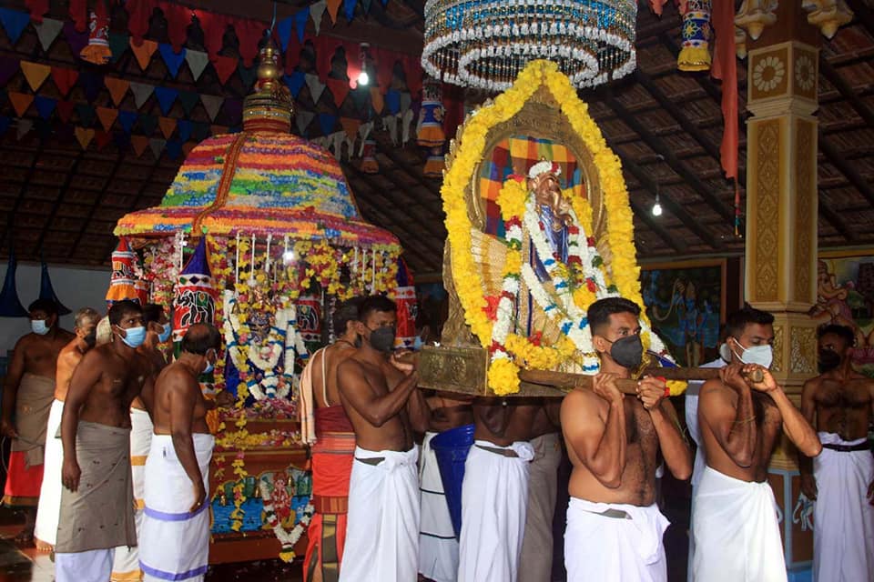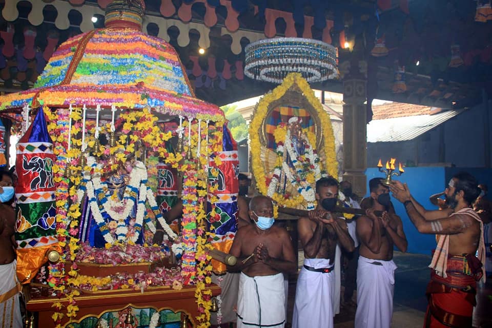 கொரோனா அச்சம் காரணமாக சிறிய தேரில் பஞ்சமுக பிள்ளையார் எழுந்தருளி உள்வீதி உலா வந்தார். அதன் போது எழுந்தருளி பிள்ளையாரை இராணுவத்தினர் பிள்ளை தண்டில் காவி உள்வீதி உலா வந்தனர்.