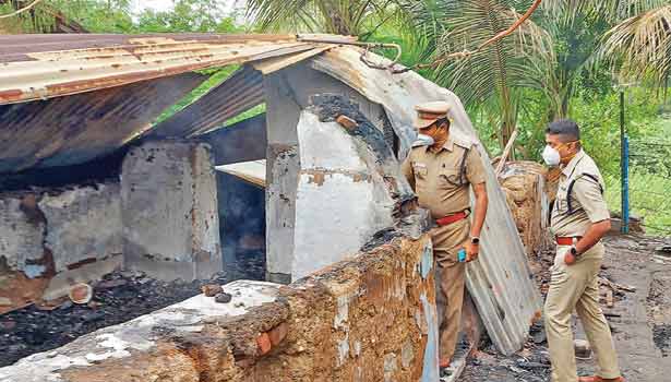 விசாரணையில் காட்டுராஜாவின் 3-வது மகன் குமார் என்பவரின் 16 வயது மகன் வீட்டை பூட்டி வீட்டிற்கு தீ வைத்துள்ளார் என்பது தெரிய வந்தது.
