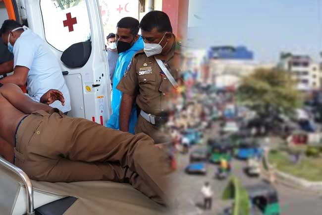 அதிகாரியின் தலைப்பகுதிக்கு மேற்கொள்ளப்பட்ட தாக்குதல் கழுத்துப் பகுதிக்கு விழுந்துள்ளதாக தெரிவிக்கப்படுகிறது.