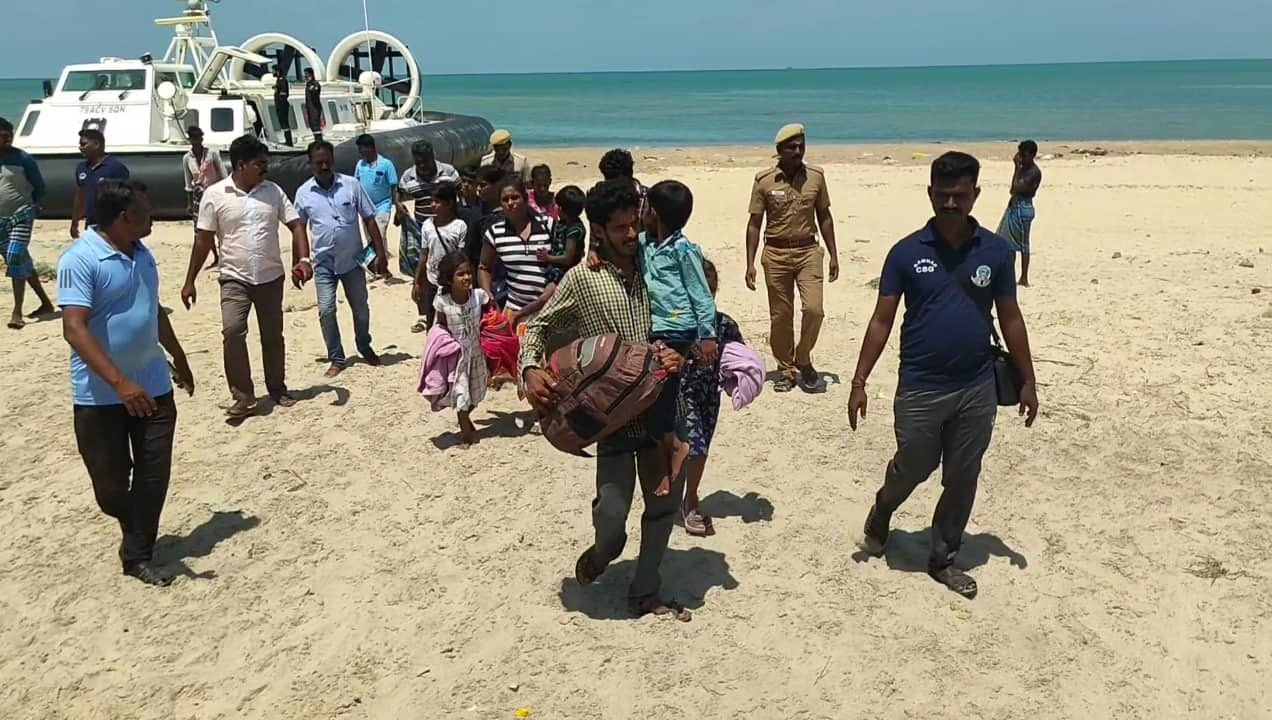 தனுஷ்கோடி அடுத்துள்ள இரண்டாம் மணல் திட்டில் குழந்தைகளுடன் இலங்கை தமிழர்கள் உணவின்றி தவித்து வருவதாக மீனவர்கள் அளித்த தகவலின் அடிப்படையில் இந்திய கடலோர காவல் படைக்கு சொந்தமான ஹோவர் கிராப்ட் ரோந்து கப்பலில் இந்திய கடலோர காவல்படை வீரர்கள் விரைந்து சென்று மணல் திட்டில் தஞ்சமடைந்திருந்த இலங்கை தமிழர்களை மீட்டு அரிச்சல்முனை அழைத்து வந்து ராமேஸ்வரம் மரைன் பொலிஸாரிடம் ஒப்படைத்தனர்.
