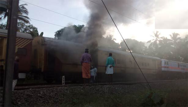 மங்களூருவில் இருந்து திருவனந்தபுரம் நோக்கி மலபார் எக்ஸ்பிரஸ் ரெயில் வந்துகொண்டிருந்தது. இன்று காலை 7.45 மணயளவில் திருவனந்தபுரத்தை நெருங்கியபோது, ரெயிலின் பார்சல் பெட்டியில் தீப்பிடித்து அதில் இருந்து புகை வெளியேறுவதை பயணிகள் சிலர் கவனித்தனர். உடனடியாக செயினைப் பிடித்து ரெயிலை நிறுத்தினர். வர்கலா அருகே ரெயில் நின்றது. தீ விபத்து குறித்து ரெயில்வே அதிகாரிகளுக்கும் தகவல் கொடுத்தனர்.