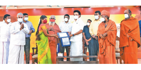 மேலும், உயிரிழந்த 3 பணியாளர்களின் குடும்பத்திற்கு ரூ.7 லட்சத்துக்கான குடும்ப நலநிதியும், 5 ஓய்வூதியதாரர்களுக்கு ஓய்வூதிய ஆணைகளையும் மு.க.ஸ்டாலின் வழங்கினார். இந்நிகழ்ச்சியில், அமைச்சர்கள் கே.என்.நேரு, மா.சுப்பிரமணியன், பி.கே.சேகர்பாபு, எம்எல்ஏக்கள் த.வேலு, பிரபாகர ராஜா, தவத்திரு குன்றக்குடி பொன்னம்பல அடிகளார், சாந்தலிங்க மருதாசல அடிகள், தவத்திரு குமரகுருபர சுவாமிகள், ஆன்மிக பேச்சாளர்கள் சுகி சிவம், தேச மங்கையர்க்கரசி, அறநிலையத்துறை முதன்மைச் செயலாளர் சந்தரமோகன், ஆணையர் ஜெ.குமரகுருபரன், கூடுதல் ஆணையர் கண்ணன் உட்பட உயர் அதிகாரிகள் கலந்து கொண்டனர். உயிரிழந்த 3 பணியாளர்களின் குடும்பத்திற்கு ரூ.7 லட்சத்துக்கான குடும்ப நலநிதியும், 5 ஓய்வூதியதாரர்களுக்கு ஓய்வூதிய ஆணைகளையும் மு.க.ஸ்டாலின் வழங்கினார்.