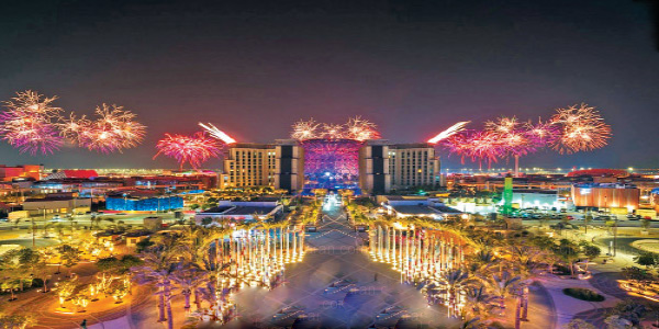 தொடக்க விழாவில் முகப்பு பகுதியில் அல்வாசல் பிளாசா அரங்கில் பிரமாண்டமான ஏற்பாடுகள் செய்யப்பட்டிருந்தது. இதில், பல்வேறு நாடுகளின் கலாசாரத்தை வெளிப்படுத்தும் கலை நிகழ்ச்சிகளும், வாண வேடிக்கைகளும் நடைபெற்றன. இதில், அமீரக துணை அதிபர் சேக் முகமது பின் ராசித் அல் மக்தூம், அபுதாபி பட்டத்து இளவரசர் சேக் முகமது பின் ஜாயித் அல் நஹ்யான் மற்றும் அமீரக தலைவர்கள் பங்கேற்றனர். சர்வதேச அளவில் புகழ்பெற்ற இசை கலைஞர்களின் இசை நிகழ்ச்சிகள் தொடர்ச்சியாக நடைபெற்றது.