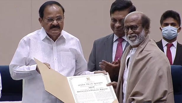 இன்று டெல்லியில் தேசிய விருதுகள் வழங்கும் விழா நடைபெற்றது. இவ்விழாவில் துணை ஜனாதிபதி வெங்கையா நாயுடு தாதாசாகேப் பால்கே விருதை ரஜினிகாந்துக்கு வழங்கினார். திரையுலகில் ரஜினிகாந்த் நிகழ்த்தியுள்ள வாழ்நாள் சாதனைக்காக இந்த விருது வழங்கப்பட்டது.