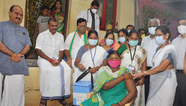 அதன்படி நாடு முழுவதும் வீடு வீடாக சென்று தடுப்பூசி செலுத்தும் பணி தொடங்கப்பட்டுள்ளது.