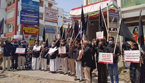 அதன்படி பா.ஜனதா அரசை கண்டித்து தி.மு.க. தலைமையிலான கூட்டணி கட்சிகள் சார்பில் தமிழகம் முழுவதும் இன்று காலை 10 மணிக்கு கட்சி அலுவலகங்கள் முன்பு கருப்பு கொடி ஏந்தி போராட்டம் நடத்தப்பட்டது. அதேபோல் கட்சி நிர்வாகிகள் வீடுகளின் முன்பு கருப்பு கொடி ஏந்தி ஆர்ப்பாட்டம் செய்தனர்.