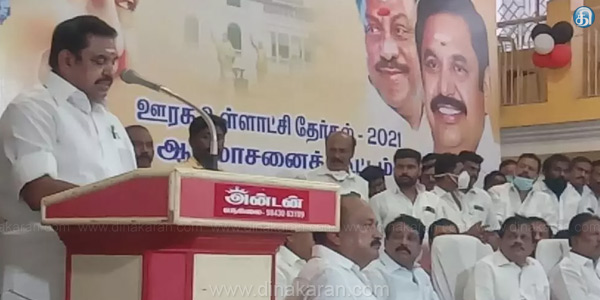 தமிழகத்தில் புதிதாக உருவான 9 மாவட்டங்களில் நடக்கும் ஊரக உள்ளாட்சி தேர்தல் பிரசாரத்தை துவங்க, நெல்லை சென்ற அதிமுக இணை ஒருங்கிணைப்பாளரும், முன்னாள் முதல்வருமான எடப்பாடி பழனிசாமிக்கு, விருதுநகர் மாவட்டம், சாத்தூர் வெங்கடாசலபுரம் தேசிய நெடுஞ்சாலையில் அதிமுகவினர் வரவேற்பு அளித்தனர். காரில் இருந்தபடியே எடப்பாடி பழனிசாமி வரவேற்பை ஏற்றுக் கொண்டார். முன்னாள் அமைச்சர்கள் ராஜேந்திரபாலாஜி, உதயகுமார் உடனிருந்தனர். அப்போது, விருதுநகர் கிழக்கு மாவட்ட அதிமுக செயலாளரான ரவிச்சந்திரனின் ஆதரவாளர் ஒருவர், ‘‘முன்னாள் அமைச்சர் ராஜேந்திரபாலாஜி ஒழிக’’ என கோஷமிட்டார்.