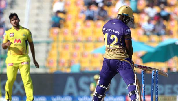கேப்டன் மோர்கன் 8 ரன்னில் வெளியேறினார். அரைசதம் நோக்கிச் சென்ற ராகுல் திரிபாதி 33 பந்தில் 45 ரன்கள் எடுத்து ஆட்டமிழந்தார். அந்த்ரே ரஸல் 15 பந்தில் 20 ரன்கள் எடுத்து க்ளீன் போல்டானார். ரஸல் ஆட்டமிழக்கும்போது கொல்கத்தா 16.4 ஓவரில் 125 ரன்கள் எடுத்திருந்தது.