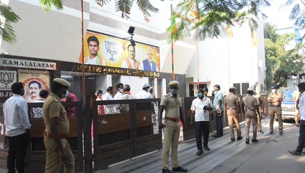 இந்தநிலையில் தி.நகர் வைத்தியராமன் தெருவில் உள்ள பா.ஜனதா கட்சியின் மாநில தலைமை அலுவலகமான கமலாலயத்தில் பெட்ரோல் குண்டுகள் வீசப்பட்ட சம்பவம் பரபரப்பை ஏற்படுத்தி உள்ளது.