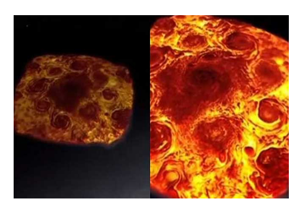 இதனால் நாசா தொடர்ந்து ஆய்வுகளை மேற்கொண்டு வருகிறது. இந்நிலையில், வியாழன் கோளின் வடக்குப் பகுதியை வெப்பத்தைக் கொண்டு அளவிடும் முறையில் எடுக்கப்பட்ட காணொளியை நாசா பகிர்ந்துள்ளது.