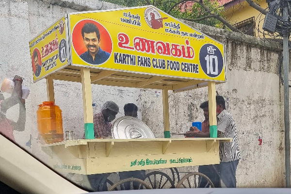இந்நிலையில் நடிகர் கார்த்தியின் அறிவுரைப்படி அவரது ரசிகர்கள் சென்னைப் பெருநகரங்களில் உணவு வண்டியை தொடங்கி உள்ளனர்.