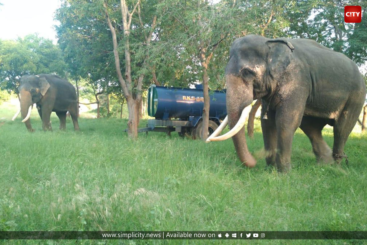 அப்போது யானையை இறங்கியதுன் பாகன் ஒருவர் யானை மீது ஏற கீழே இரண்டு பாகன்கள் நின்று கொண்டிருந்தனர்.