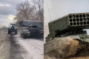 இந்த சூழலில் உக்ரைன் டிராக்டர் படைப்பிரிவு ரஷ்யாவிற்கு மீண்டும் ஒரு ஷாக் கொடுத்திருக்கிறது. அதன்படி டிராக்டர் மூலம் ரஷ்யாவின் TOS-1 மல்டிபிள் ராக்கெட் லாஞ்சரை இழுத்து செல்லும் வீடியோ வெளியாகியுள்ளது. இந்த ராக்கெட் லாஞ்சரை வைத்து மிகப்பெரிய அளவில் அழிவை ஏற்படுத்த முடியும்.