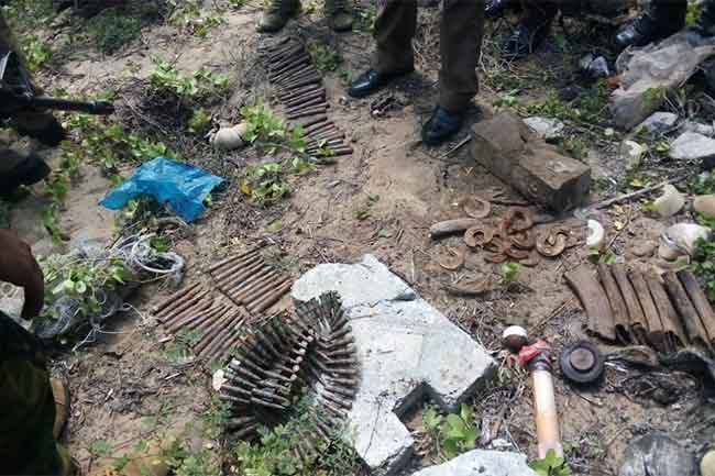 இதன் போது அங்கு நிலத்தில் புதைத்து வைக்கப்பட்டிருந்த பெரும் அளவிலான துப்பாக்கி ரவைகள் மற்றும் வெடிபொருட்களை மீட்கப்பட்டுள்ளதாக பொலிஸார் தெரிவித்தனர்