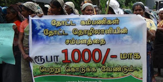மஸ்கெலியா பெருந்தோட்ட கம்பனிக்கு சொந்தமான தேயிலை தோட்டங்களில் பணிபுரியும் தோட்ட தொழிலாளர்களின் நாளாந்த சம்பளத்தை உடனடியாக 1000 ரூபாவாக அதிகரிக்குமாறு கோரி மஸ்கெலியா பிரதேசத்தில் உள்ள பல தேயிலை தோட்ட தொழிலாளர்கள் இன்று கவனயீர்ப்பு போராட்டத்தில் ஈடுபட்டனர்.
