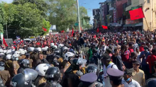 போராட்டக்காரர்களை கலைக்க பொலிஸார் கண்ணீர் புகை மற்றும் நீர்தாரைப் பிரயோகத்தை மேற்கொண்டதால் அங்கு பதற்றமான சூழ்நிலை ஏற்பட்டுள்ளது.