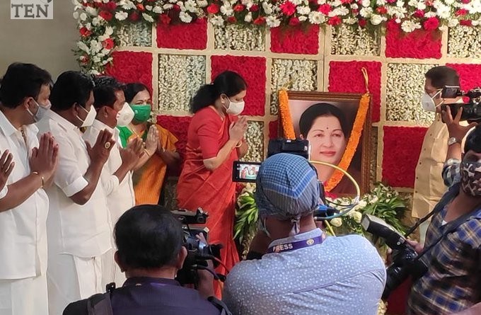 மறைந்த முன்னாள் முதல்வர் ஜெயலலிதாவின் 73வது பிறந்தநாளை முன்னிட்டு சென்னை தி.நகரிலுள்ள இல்லத்தில் அவரது உருவப்படத்திற்கு சசிகலா மலர்த்துவி மரியாதை செலுத்தினார். சிறையிலிருந்து வெளிவந்த பிறகு வீட்டிலேயே ஓய்வெடுத்து வந்த சசிகலா, முதல்முறையாக இந்த நிகழ்ச்சியில் கலந்துகொண்டார்.