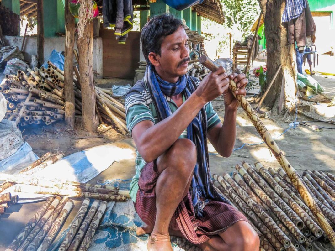 42 வயதான மணிராம், இந்த ஸ்விங்கிங் புல்லாங்குழல் செய்வதை முழு நேர தொழிலாக செய்து வருகிறார். ஒரு புல்லாங்குழல் 50 ரூபாய் முதல் 300 ரூபாய் வரையிலும் விற்கப்படுகிறது. சத்தீஸ்கர் மாநிலத்தின் நாராயன்பூர் மாவட்டத்தின் அபுஜ்மத் (ஓர்ச்சா) தொகுதியின் காடுகளில் உள்ள கோண்ட் ஆதிவாசி சமூகத்தின் குக்கிராமமான கட்பங்கலின் விளிம்பில் உள்ளது மணிராமின் பட்டறை.
