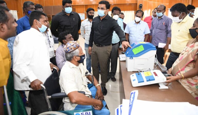 பின்னர், மின்னணு வாக்குப்பதிவு இயந்திரத்தில் வாக்களிப்பது குறித்து மாற்றுத்திறனாளிகள் அறிந்து கொள்ளும் விதமாக மாதிரி வாக்குப் பதிவை, ஆட்சியர் செந்தில்ராஜ் தொடங்கி வைத்தார். இதில், மின்னணு வாக்குப்பதிவு இயந்திரத்தில் வாக்களிக்கும் முறை குறித்தும், தேர்தலில் யாருக்கு வாக்களித்தோம் என்பதை விவிபேட் கருவி மூலம் அறிந்து கொள்ளும் விதமாகவும் செயல் விளக்கம் அளிக்கப்பட்டது.