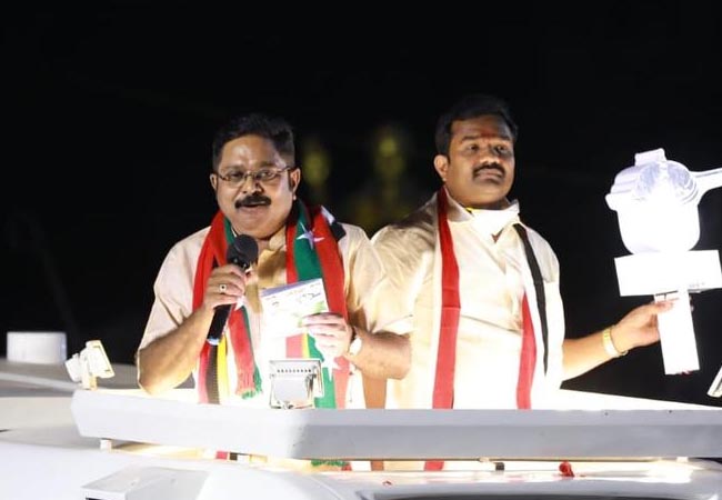 அப்போது பேசிய டிடிவி.தினகரன், "தி.மு.க. யாரையும் நம்பாத ஒரு கட்சி. குஜராத்தில் உள்ள ஐபேக் நிறுவனத்தை மட்டும் நம்புகிறது. 50 ஆண்டுகள் கட்சிக்காக உழைத்தவர்களுக்கு மரியாதை இல்லை. அடுத்த ஒரு கட்சி துரோகக் கட்சி, அது எந்த கட்சி என்று உங்களுக்குத் தெரியும். இங்கு வந்த முதல்வர் வானத்திலிருந்து குதித்து போல பேசியிருப்பார். நாம் தொண்டர்களை நம்பி தேர்தலில் நிற்கிறோம். அவர்கள் பணத்தை நம்பி தேர்தலில் நிற்கிறார்கள். பணமூட்டை தோலில் போட்டுக் கொண்டு தேர்தலில் நிற்கின்றனர். தற்போது எடப்பாடி பழனிசாமிக்குத் தோல்வி பயம் வந்துவிட்டது.