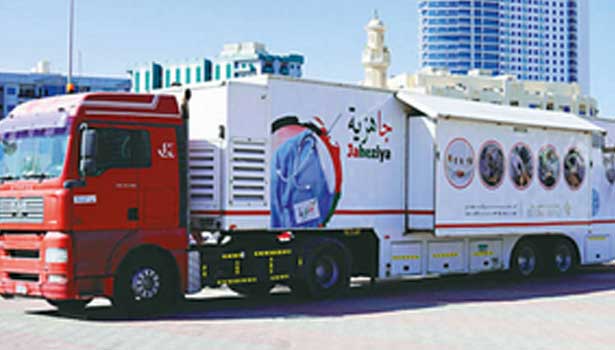 அதன்படி, தேசிய அவசர சேவை மற்றும் பேரிடர் மேலாண்மை ஆணையம், அமீரக சுகாதாரம் மற்றும் தடுப்புத்துறை அமைச்சகம் மற்றும் ஷேக்கா பாத்திமா பிந்த் முபாரக் தன்னார்வ திட்டம் ஆகியவை இணைந்து அஜ்மானில் புதிதாக நடமாடும் மருத்துவ நிலையத்தை ஏற்படுத்தியுள்ளது.