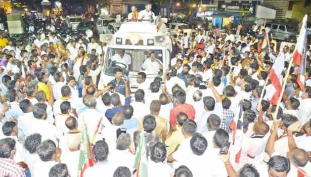 தே.மு.தி.க. தலைவர் விஜயகாந்தின் மகன் விஜயபிரபாகரன் தமிழகத்தில் தேர்தல் பிரசாரம் மேற்கொண்டு வருகிறார். நேற்று திருப்பூர் வடக்கு சட்டமன்ற தொகுதி அ.ம.மு.க. கூட்டணியில் போட்டியிடும் தே.மு.தி.க. வேட்பாளர் செல்வக்குமாருக்கு முரசு சின்னத்தில் வாக்கு சேகரித்து திருப்பூர் அனுப்பர்பாளையத்தில் விஜயபிரபாகரன் பேசியதாவது:-