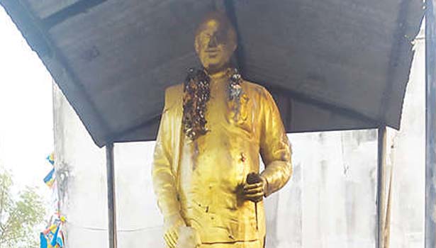 நேற்று காலையில் அந்த பகுதிக்கு வந்த தி.மு.க. நிர்வாகிகள் சிலர் அண்ணா சிலை புகைபிடித்து கருமையான நிறத்துடன் இருப்பதை பார்த்து அதிர்ச்சி அடைந்தனர். இது பற்றிய தகவல் அறிந்து அங்கே தி.மு.க.வினர் திரண்டனர்.