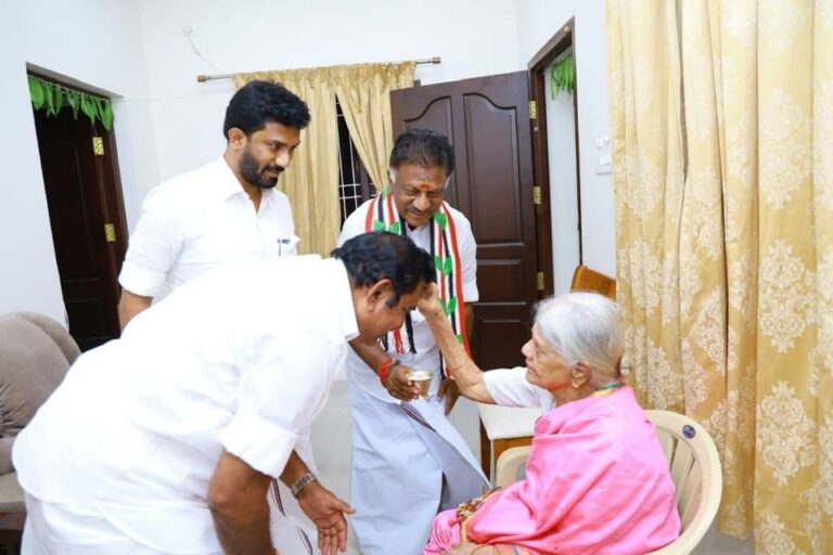 முதல்வர் எடப்பாடி பழனிசாமியுடன் எடுத்துக்கொண்ட புகைப்படத்தை ஓபிஎஸ் இளையமகன் ஜெயபிரதீப் தனது முகநூல் பக்கத்தில் பதிவிட்டுள்ளார் . அதில் , ‘எனது அப்பத்தா பாசத்திற்குரிய ஓ.பழனியம்மாள் அவர்கள் மாண்புமிகு தமிழ்நாடு முதலமைச்சர் மற்றும் மாண்புமிகு தமிழ்நாடு துணை முதலமைச்சர் ஆகியோரை வாழ்த்தி ஆசீர்வாதங்களை வழங்கினார்’ என்று குறிப்பிட்டுள்ளார்.