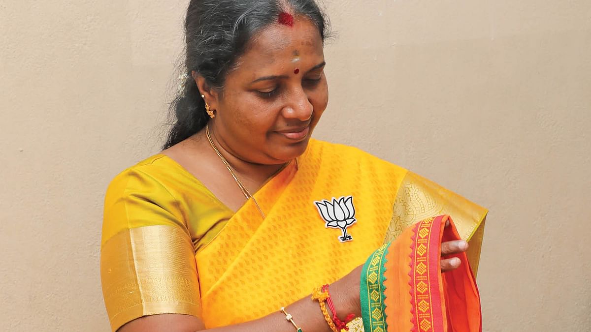 அப்போது அவர் தாமரை சின்ன பேட்ஜ் அணிந்திருந்தார். இது, தேர்தல் விதிமீறல் என அங்கிருந்தவர்கள் தெரிவித்தனர்.