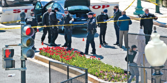 அமெரிக்காவின் வாஷிங்டனில் நாடாளுமன்றம் அமைந்துள்ள கேபிடால் கட்டிடத்தை சுற்றி போலீசார் பாதுகாப்பு வளையம் அமைத்து பணியில் ஈடுபட்டிருப்பது வழக்கம். நேற்று முன்தினம் மதியம் 1 மணி அளவில் கார் ஒன்று பாதுகாப்பு தடுப்புகளை மோதி நாடாளுமன்றத்திற்குள் நுழைந்தது.