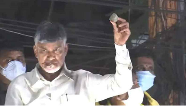 அப்போது அவர் தலைமையில் கட்சியினர் ஊர்வலம் நடத்தினர். ஊர்வலத்தில் நடந்து சென்ற சந்திரபாபு நாயுடு மீது மர்மநபர்கள் கல்வீசி தாக்குதலில் ஈடுபட்டனர். இதையறிந்த சந்திபாபுநாயுடு கீழே குனிந்து கல்வீச்சில் இருந்து தப்பித்தார். கல்வீச்சில் தொண்டர் ஒருவர் காயம் அடைந்தார்.