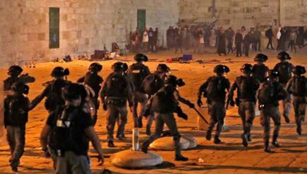 இதில் ஆயிரக்கணக்கானோர் கலந்து கொண்டிருந்தனர்.அப்போது இந்த மசூதியின் முற்றத்தில் இஸ்ரேலிய போலீஸ் படைகள் நுழைந்து, தொழுகையில் கலந்து கொண்டிருந்தவர்கள் மீது ரப்பர் தோட்டாக்களை வெடித்தனர். கண்ணீர்ப்புகை குண்டுகளையும் வீசினர். இதனால் பெரும் பதற்றம் ஏற்பட்டது.