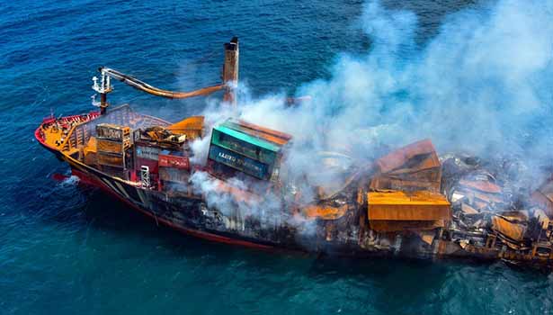 சில நாட்களுக்கு முன்பு, குஜராத் மாநிலம் ஹசிராவில் இருந்து 25 டன் நைட்ரிக் ஆசிட் ரசாயன பொருட்களும், அழகு சாதன பொருட்கள் தயாரிக்க தேவையான மூலப்பொருட்களும் ஏற்றப்பட்ட ஒரு சிங்கப்பூர் சரக்கு கப்பல், கொழும்பு துறைமுகத்துக்கு புறப்பட்டது. எம்.வி. எக்ஸ்-பிரஸ் பேர்ல் என்ற அக்கப்பலில், 5 இந்தியர்கள் உள்பட 25 சிப்பந்திகள் இருந்தனர்.