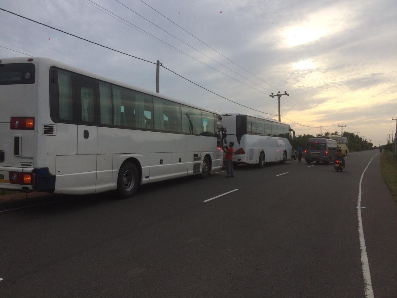 இந்த நிலையில் அந்தப் பகுதியைச் சேர்ந்தவர்களால் பேருந்துகளுக்கு கற்கள் எறியப்பட்டன. அதனால் பேருந்துகளில் பாதுகாப்புக்காகப் பயணித்த இராணுவத்தினர் கற்கள் வீசியோர் மீது நடவடிக்கை எடுக்க முறப்பட்டனர்.