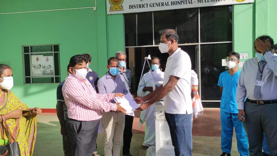 ஜக்கிய இராச்சிய மக்ககள் நலன் காப்பகம், ஜக்கிய இராச்சிய குழந்தைகள் பசி நிவாரண நிதியம் ஆகியன இணைந்து 53.5 இலட்சம் ரூபா பெறுமியான வென்டிலெட்டர் இயந்திரம் ஒன்றினை முல்லைத்தீவு மாவட்ட மருத்துவமனைக்கு அன்பளிப்பாக வழங்கி வைத்துள்ளார்கள்.