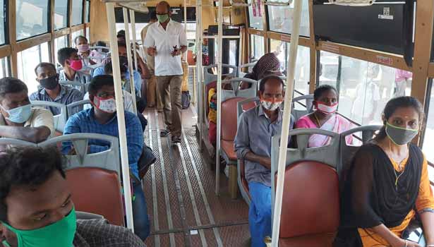 கொரோனா தொற்றின் காரணமாக கடந்த மே, ஜூன் மாதங்களில் பேருந்துகள் இயக்கப்படவில்லை. பின்னர் பாதிப்பு குறைந்ததைத் தொடர்ந்து ஜூன் 21-ந்தேதி முதல் பேருந்துகள் இயக்கப்படுகின்றன.