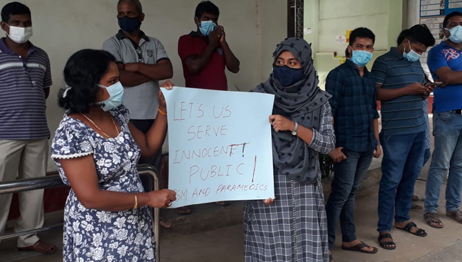 மட்டக்களப்பு போதனா வைத்தியசாலையின் ‘நிறைவுகாண் மருத்துவ அதிகாரிகள் சங்கம்’ கவனயீர்ப்பு போராட்டம் ஒன்றை முன்னெடுத்துள்ளதாக தெரிவிக்கப்படுகின்றது