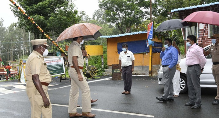 அப்போது, பலத்த மழைக்கு நடுவே குடைபிடித்தவாறு, பாதுகாப்பு பணியில் ஈடுபட்டிருந்த தமிழக வனத்துறை, காவல்துறையினர் மற்றும் சுகாதாரத்துறை சோதனைச்சாவடியில் பணியில் இருந்தவர்களிடம் தடுப்பு பணிகள் குறித்து கேட்டறிந்தார். மேலும், கேரள மாநிலம் கம்பம்மெட்டு காவல் ஆய்வாளர் ராபர்ட் ஜானிராணியிடம், அந்த மாநில அரசின் நோய் தடுப்பு நடைமுறைகள் குறித்து கேட்டறிந்தார்.