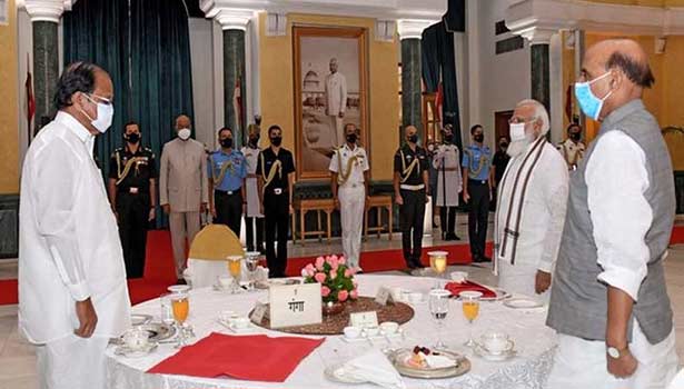 ஜனாதிபதி ராம்நாத் கோவிந்த் மத்திய மந்திரிகளுக்கு தேநீா் விருந்து அளித்தாா். ஜனாதிபதி மாளிகையில் உள்ள கலாசார மையத்தில் நடைபெற்ற இந்த விருந்தில் துணை ஜனாதிபதி எம்.வெங்கையா நாயுடு, பிரதமா் நரேந்திர மோடி ஆகியோரும் கலந்து கொண்டனா்.