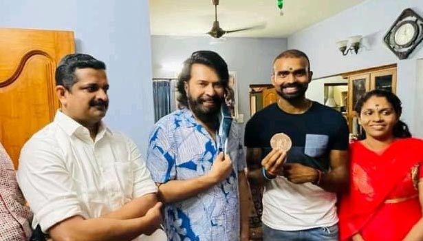 இந்நிலையில் நடிகர் மம்முட்டி, கேரளாவில் உள்ள ஸ்ரீஜேஷின் வீட்டிற்கு திடீர் வருகை தந்து இன்ப அதிர்ச்சி கொடுத்து இருக்கிறார். திறமையான ஆட்டத்தை வெளிப்படுத்தியதற்காக ஸ்ரீஜேஷை பாராட்டி பூங்கொத்து கொடுத்து இருக்கிறார்.