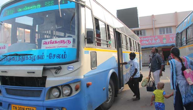சேலத்தில் இருந்து பெங்களூருக்கு வழக்கமாக 42 அரசு பஸ்கள் இயக்கப்படும். இதில் 34 பஸ்கள் இன்று காலை முதல் இயக்கப்பட்டன. 8 குளிர்சாதன வசதி உடைய பஸ்கள் இயக்கப்படவில்லை.