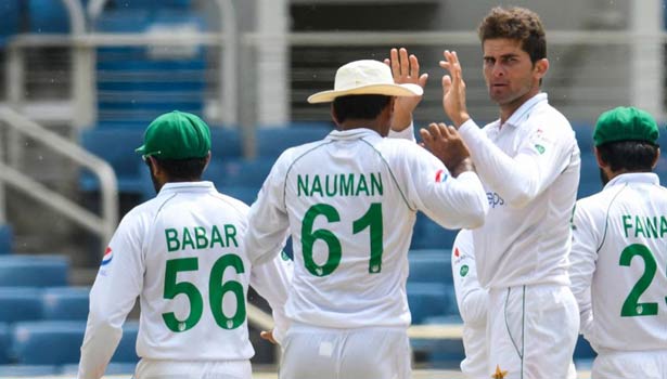 இதையடுத்து, 152 ரன்கள் முன்னிலை பெற்ற பாகிஸ்தான் இரண்டாவது இன்னிங்சில் 6 விக்கெட்டுக்கு 176 ரன்கள் எடுத்து டிக்ளேர் செய்தது. இம்ரான் பட் 37 ரன்னும், பாபர் அசாம் 33 ரன்னும், அபித் அலி 27 ரன்னும், அசார் அலி 22 ரன்னும் எடுத்தனர்.