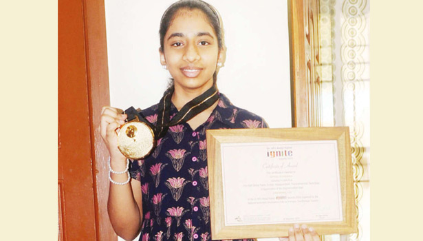 திருவண்ணாமலை மாவட்டத்தை சேர்ந்த 9-ம் வகுப்பு மாணவியான இவர், சோலார் மின்சக்தியில் இயங்கும் தெருவோர இஸ்திரி வண்டியை உருவாக்கி உள்ளார். சுமார் 40 ஆயிரம் செலவில் உருவாக்கி உள்ள இந்த வண்டியால், கரியின் பயன்பாடு கட்டுப்படுத்தப்பட்டு சுற்றுச்சூழல் பாதுகாக்கப்படுகிறது.