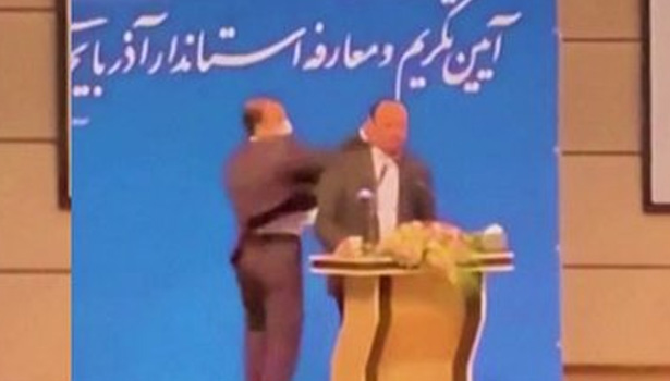 அப்போது, மேடையின் வெளியே இருந்து திடீரென உள்ளே வந்த மர்மநபர் ஆளுநரின் பின்னந்தலையில் பளார் என அறைந்தார். பின்னர், ஆளுநரிடம் சண்டையிடத் தொடங்கினார். இதைக்கண்டு அதிர்ச்சியடைந்த பாதுகாப்பு பணியில் இருந்த வீரர்கள் அந்த நபரை அங்கிருந்து அப்புறப்படுத்தி விசாரணை மேற்கொண்டதில், அந்த நபரின் பெயர் அயுப் அலிசாதே என்பது தெரியவந்துள்ளது.