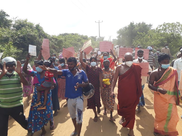 இதனையடுத்து ஊத்துச்சேனை வடமுனை பாலத்தில் ஒன்று திரண்ட மக்கள் மற்றும் வெலிகந்தை விகாரை விகாராதிபதி கோவில் பூசாரி உட்பட நூற்றுக்கு மேற்பட்ட பொதுமக்கள் காடுகளுக்குள் உழவு இயந்திரங்களில் மணல் அகழ்வில் ஈடுபடுவதால் காட்டுயானைகள் குடியிருப்புக்களை சேதப்படுத்துகின்றது. வடமுனை கிராமசேவகர் பிரிவில் மணல் அகழ்வை இரத்து செய், சட்டவிரோத மணல் அகழ்வை நிறுத்தவேண்டும். மணல் அகழ்வு என்ற போர்வையில் மரக்கடத்தல் இடம்பெறுகின்றது. போன்ற கோஷங்களை எழுப்பியவாறு சுலோகங்களை ஏந்தியவாறு வெலிகந்தை சந்தி வரை ஆர்ப்பாட்ட ஊர்வலமாக சென்று கொழும்பு பொலன்னறுவை பிரதான வீதியை மறித்து வீதியில் உட்கார்ந்து ஆர்ப்பாட்டத்தில் ஈடுபட்டனர்.