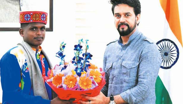 இந்நிலையில், நேற்று அவரை மத்திய விளையாட்டுத்துறை மந்திரி அனுராக் தாக்கூர் நேரில் வரவழைத்து வாழ்த்து தெரிவித்தார். அப்போது மாரியப்பனுக்கு இமாசல பிரதேசத்தின் பாரம்பரிய தொப்பி அணிவித்து மகிழ்ந்தார். மேலும், சால்வையும், பூங்கொத்தும் கொடுத்தார்.