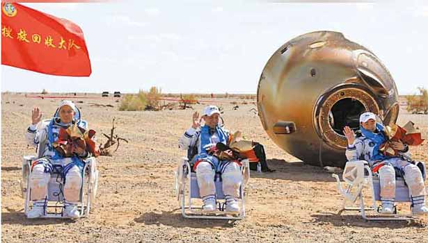 இதற்கிடையே, திட்டமிட்டபடி 90 நாட்கள் விண்வெளியில் தங்கி இருந்து கட்டுமான பணிகளை மேற்கொண்டு வந்த சீன விண்வெளி வீரர்கள் 3 பேரும் நேற்று முன்தினம் காலை சென்ஷு 12 விண்கலத்தில் பூமிக்குப் புறப்பட்டனர்.